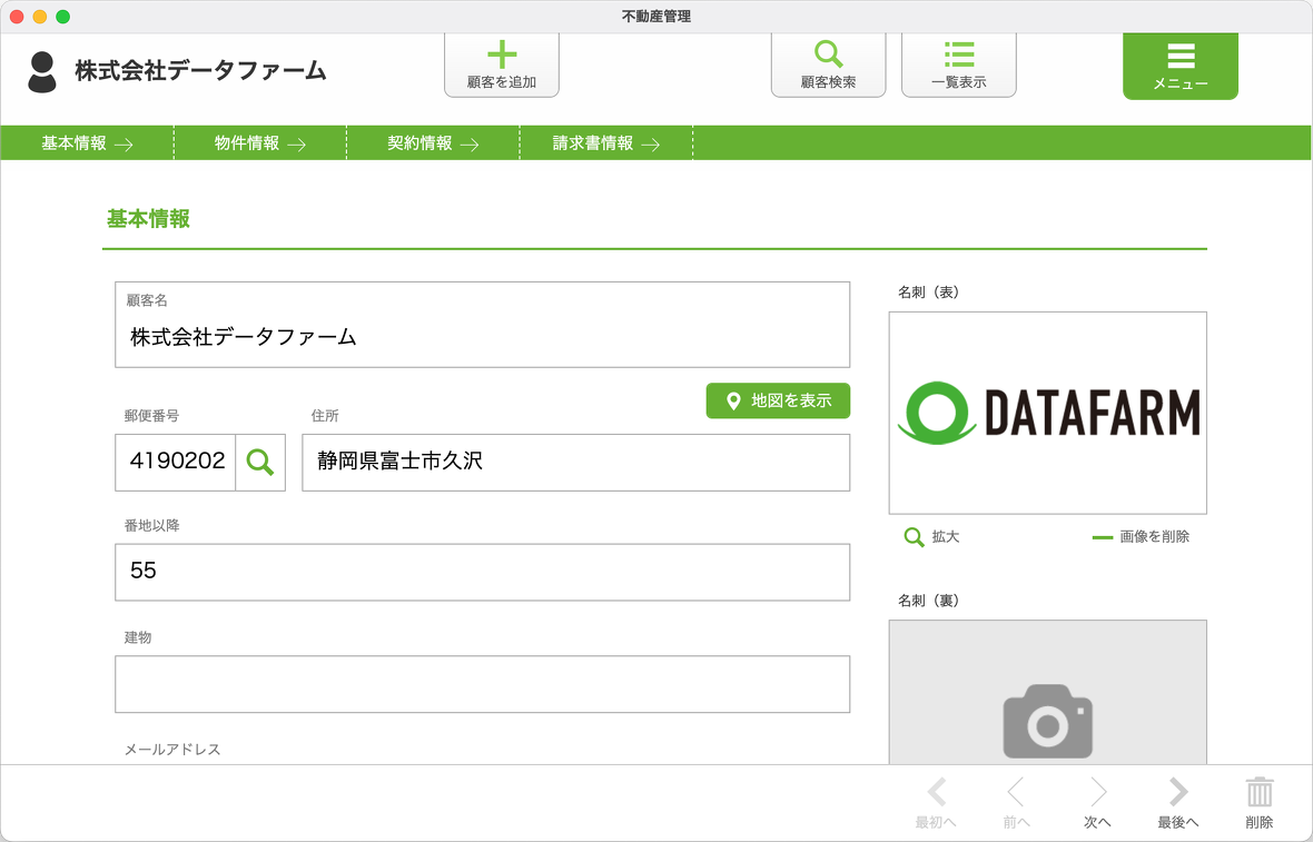 契約内容も詳細な入力欄を作成し、きめ細やかな管理が可能です。