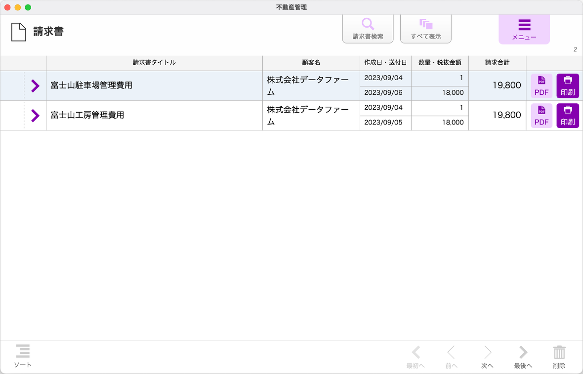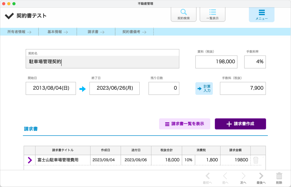 顧客ごとに不動産をしっかりと管理し、複数の物件も一括して追跡可能です。契約の履歴や請求管理も自動化され、手数料の計算や請求書の作成が簡単に行えます。
